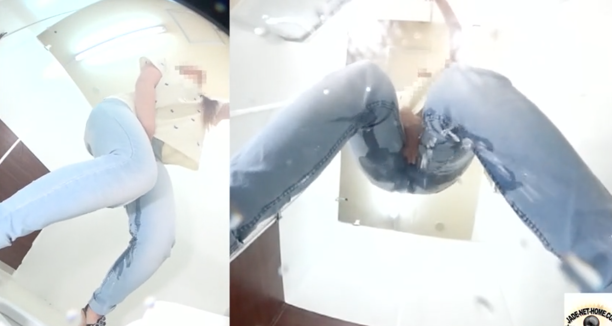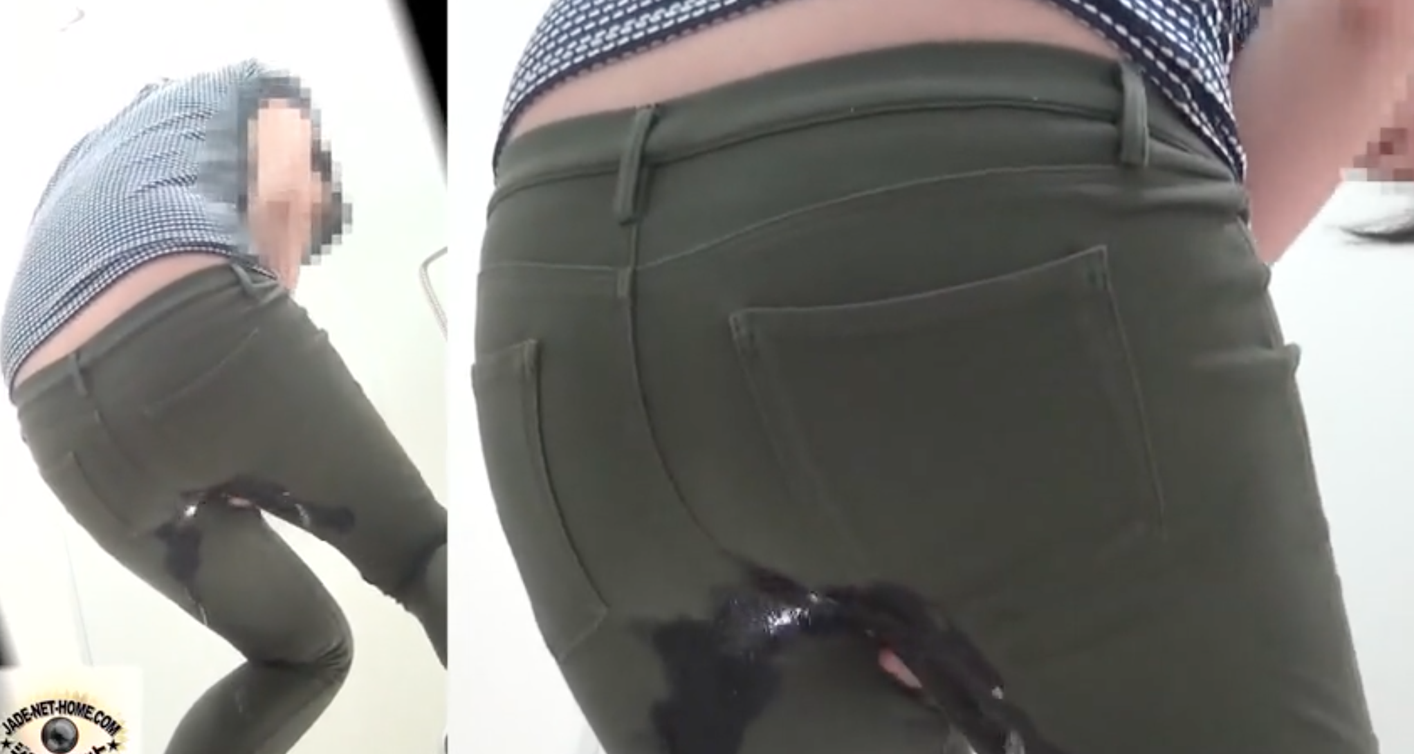 脱ぐことも諦め、ぎゅっと押さえたままお漏らし。